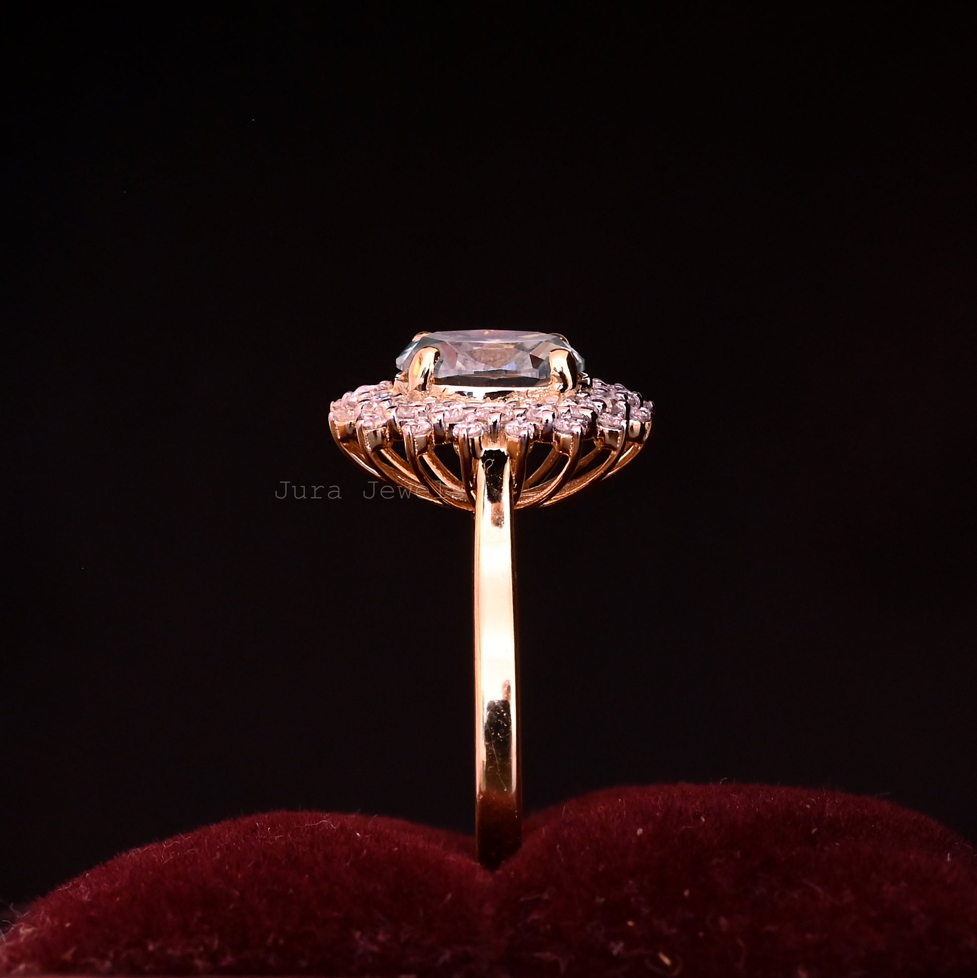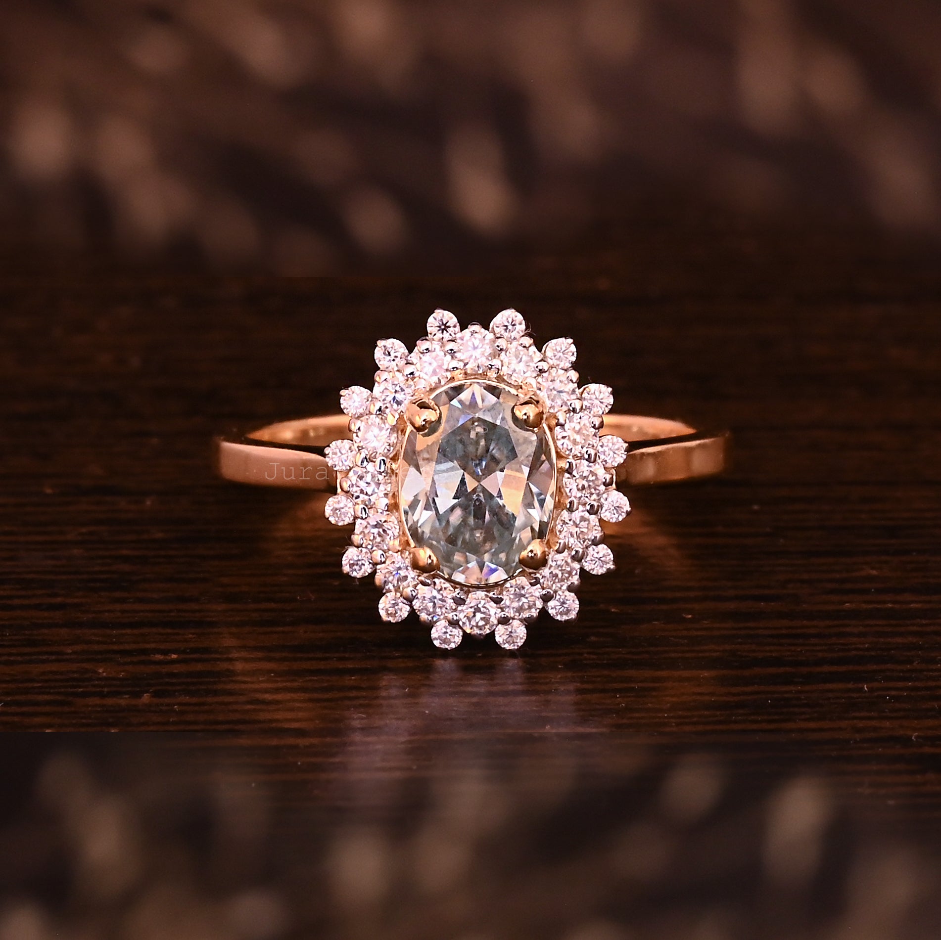 Double Halo Oval Cut Moissanite Handmade Wedding Ring For Her