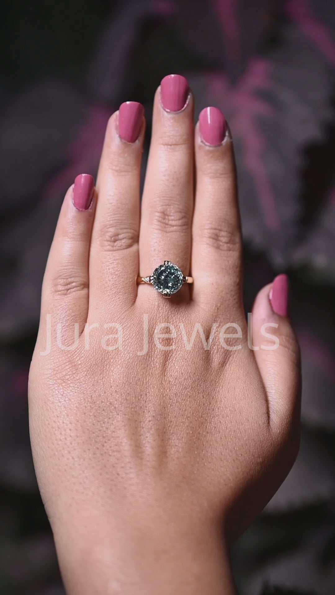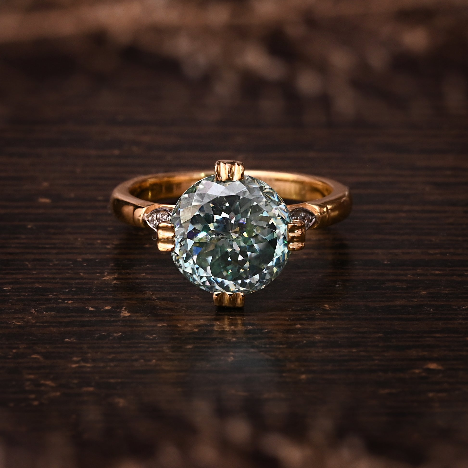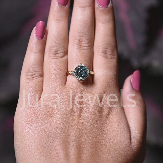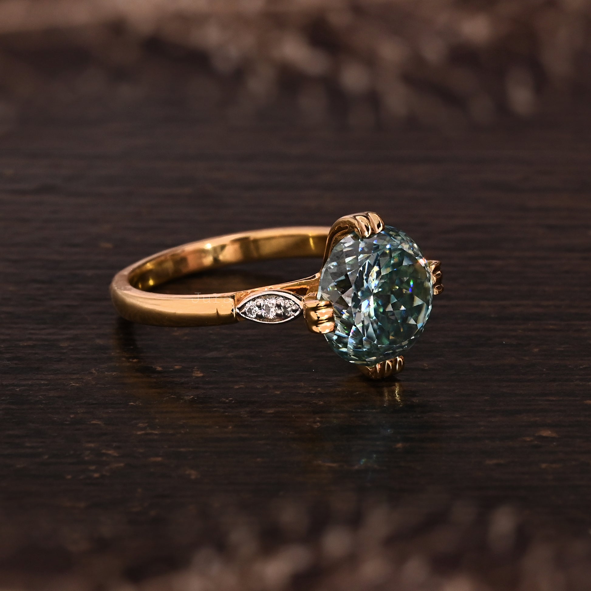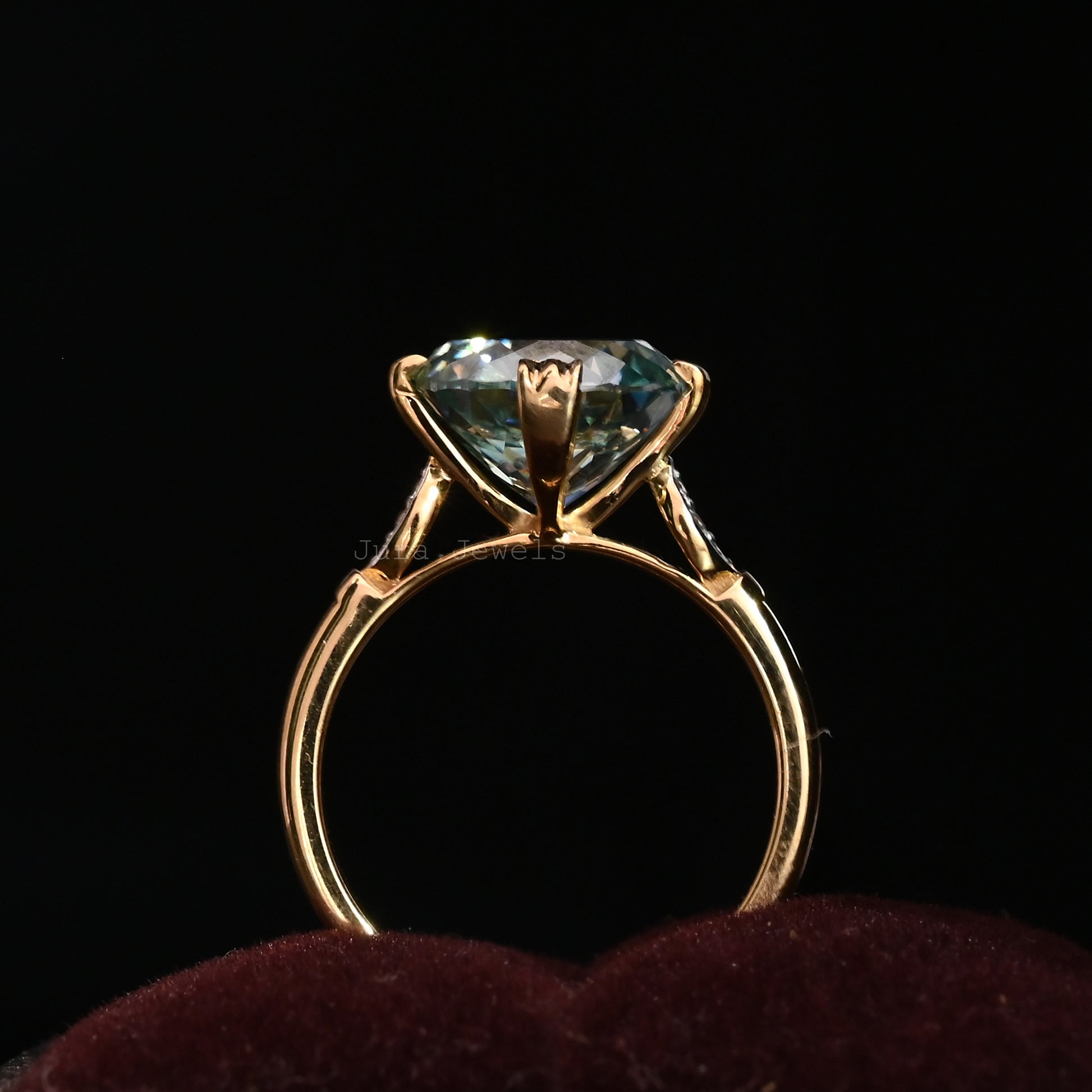 Green Portuguese Round Cut Moissanite Engagement Ring For Her