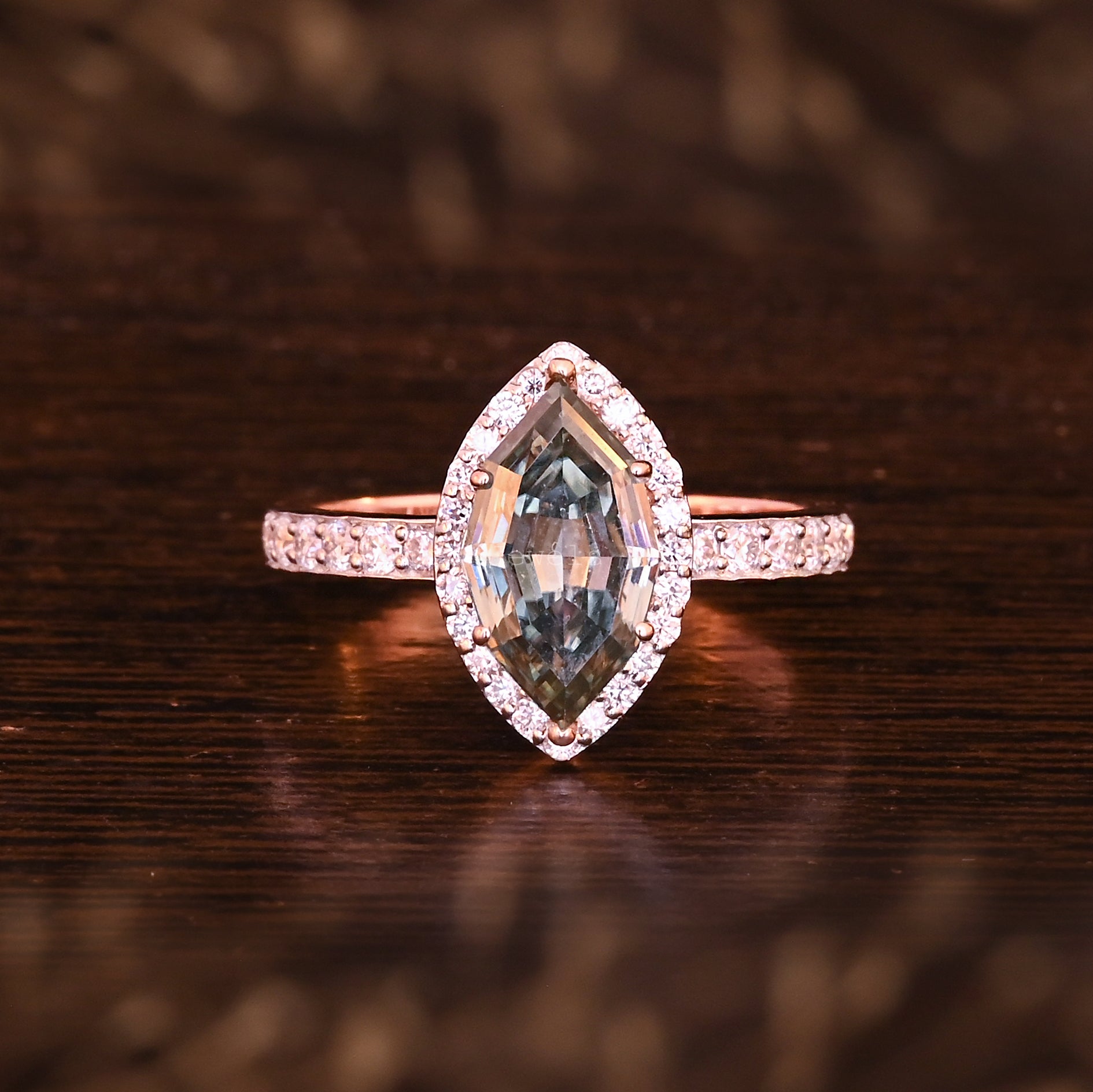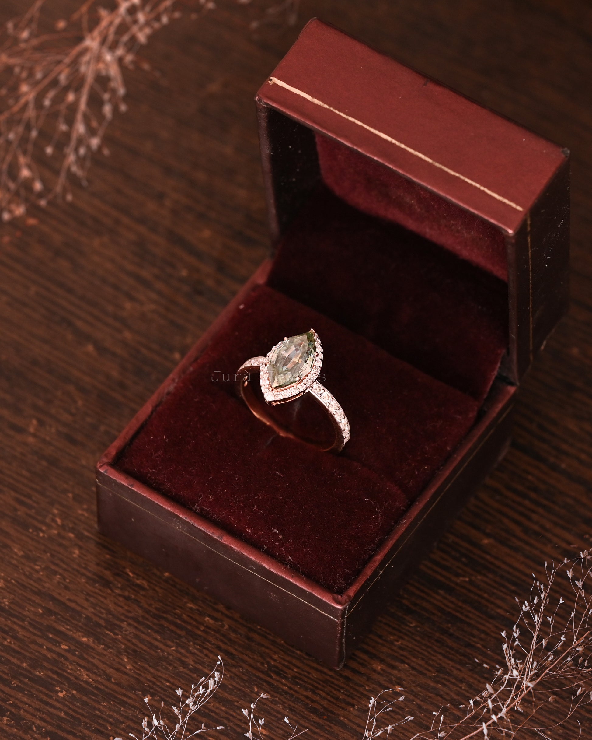 Halo Marquise Step-Cut Moissanite Handmade Ring For Girlfriend