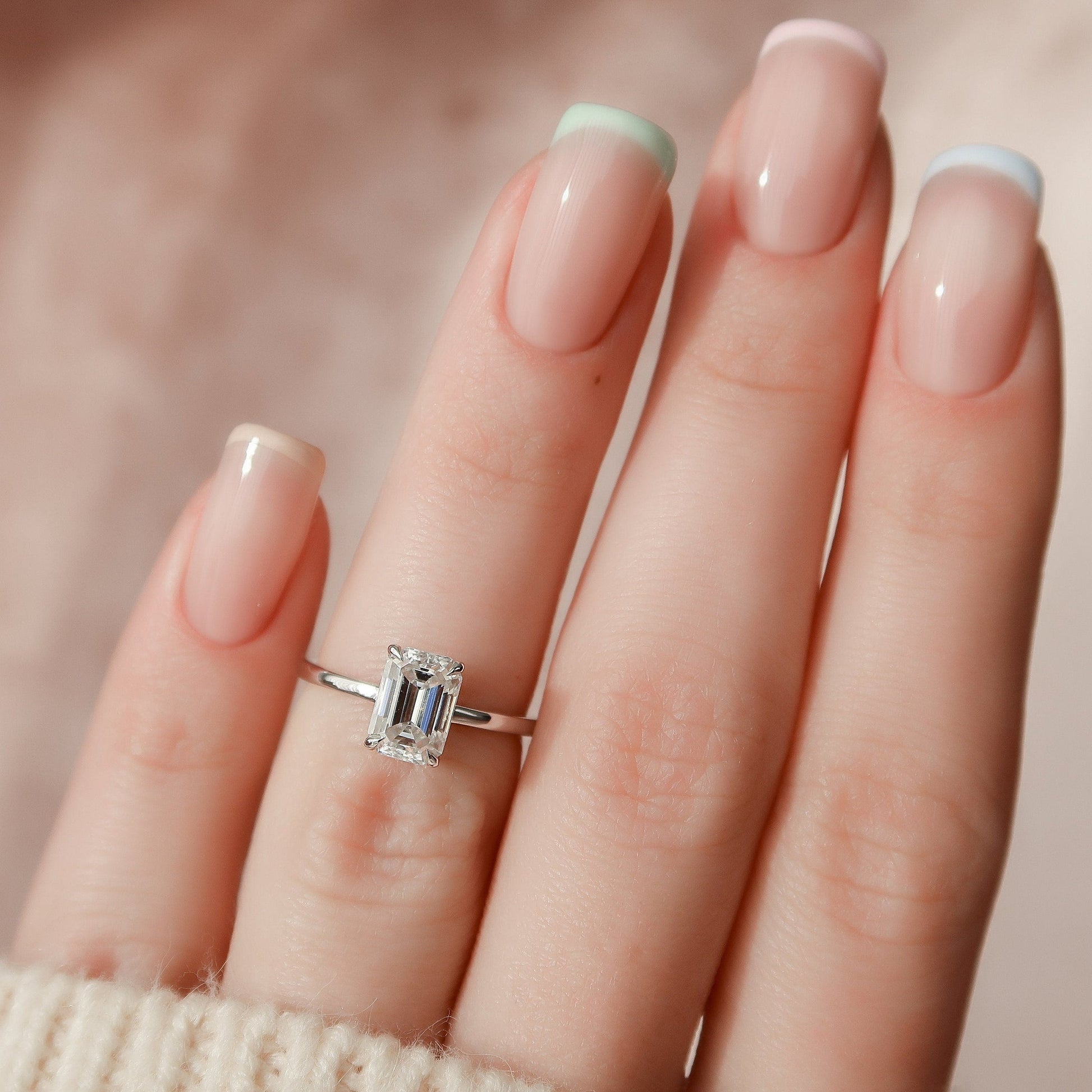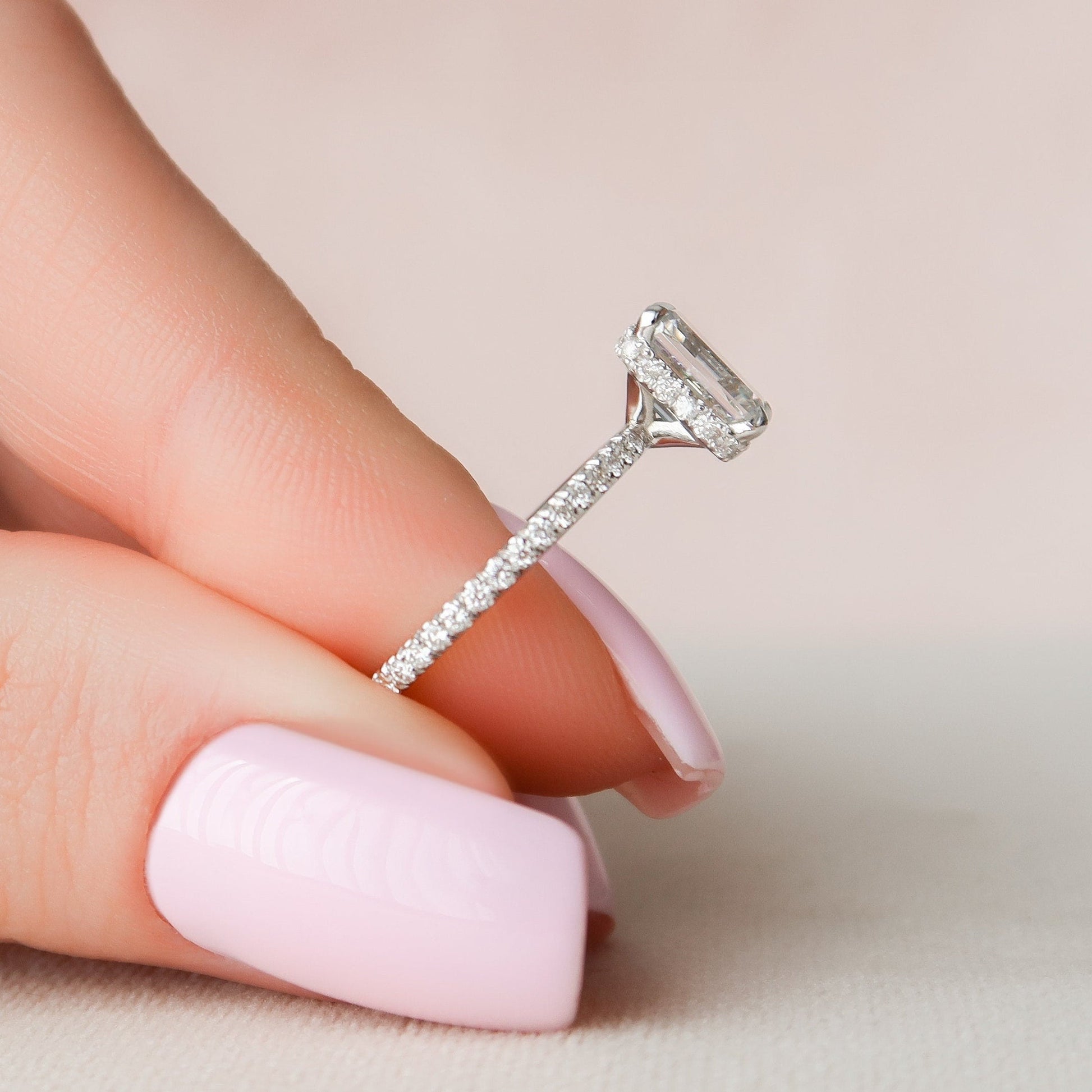 Hidden Halo Emerald Cut Moissanite Engagement Ring