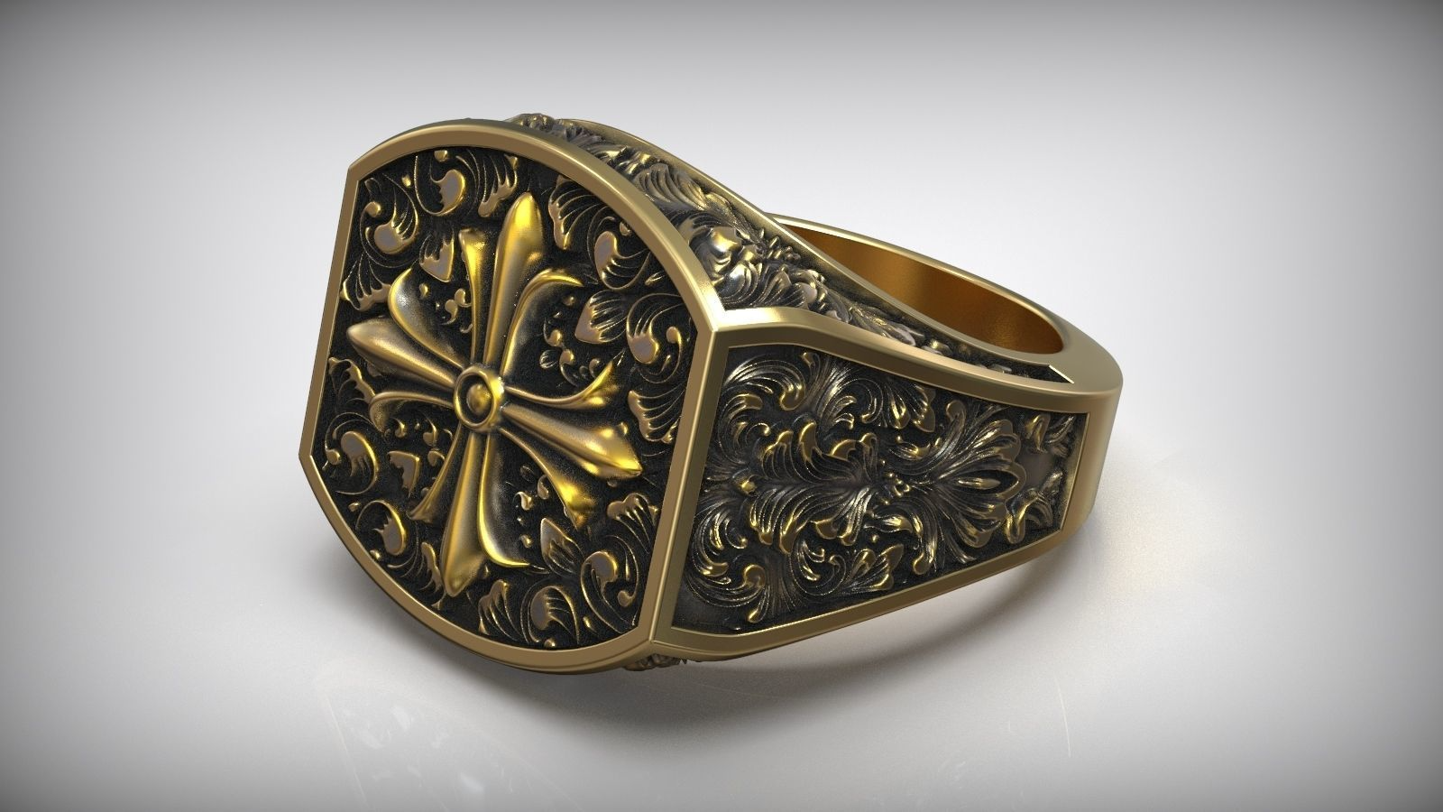 Maltese Cross Baroque Pattern White Gold Anniversary For Him
