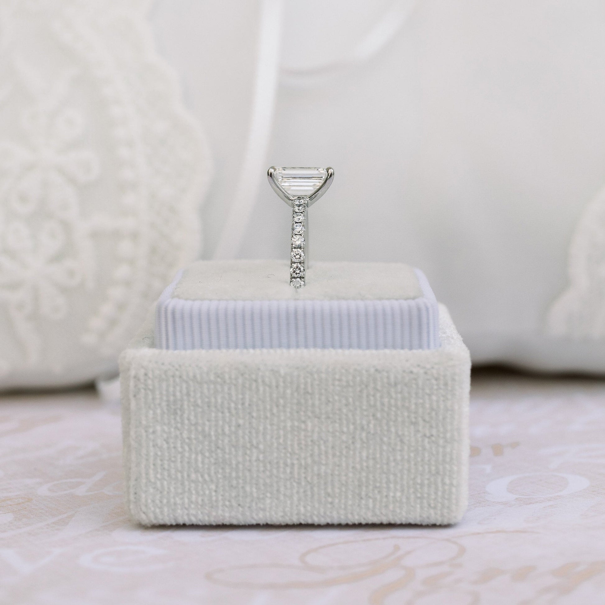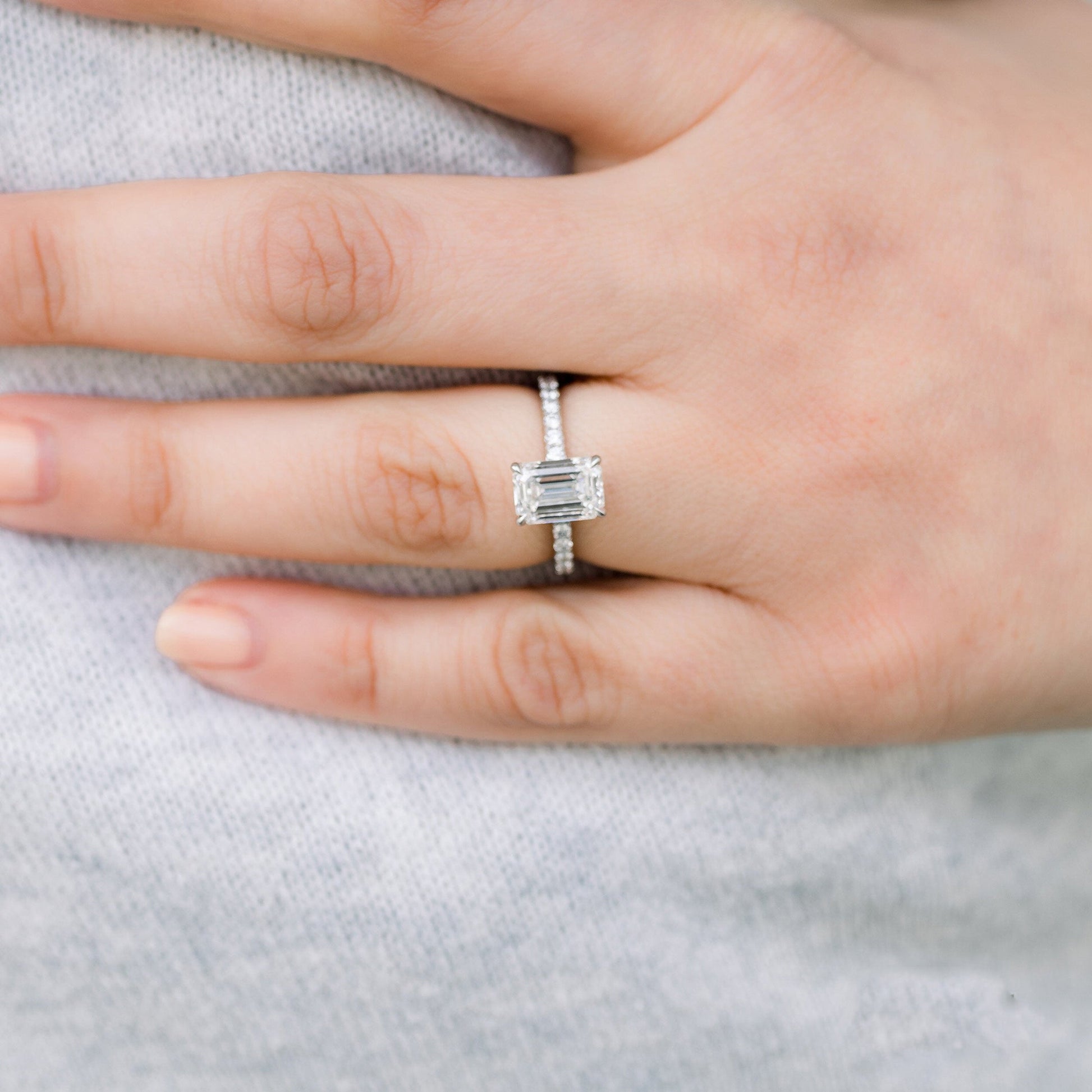 Paved Emerald Cut Moissanite Engagement Ring For Her