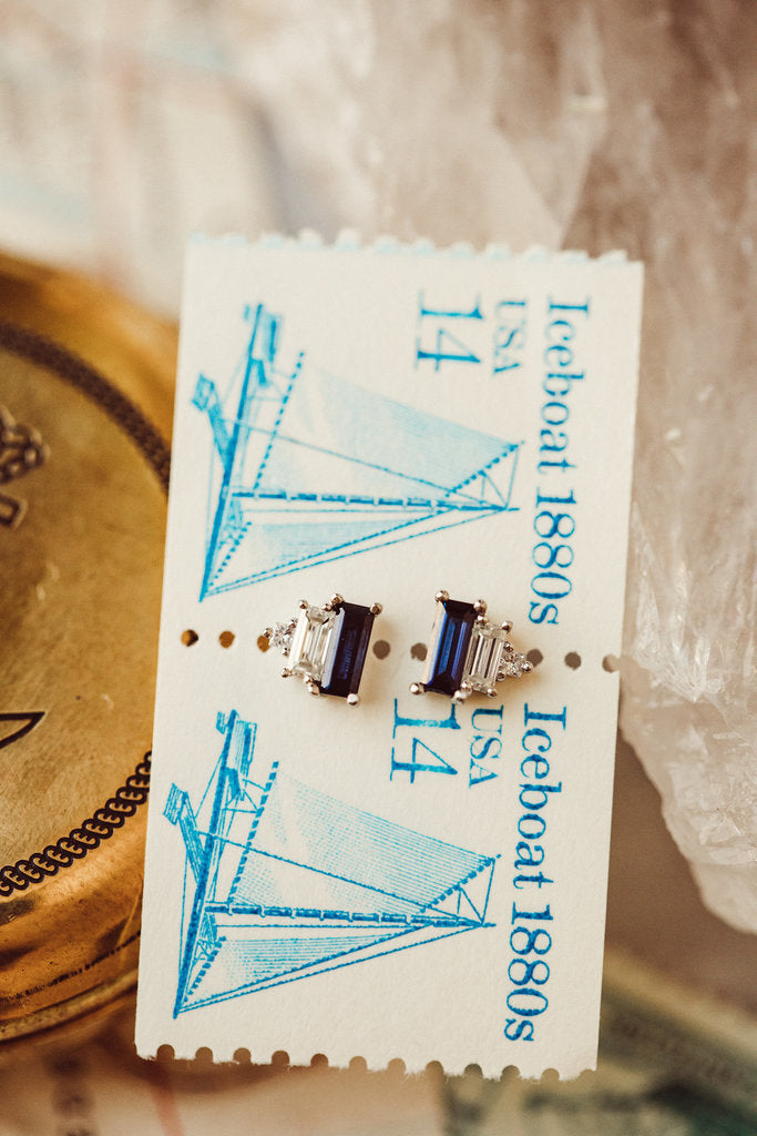 Three Stone Blue Baguette Moissanite Engagement Stud Earring For Wify