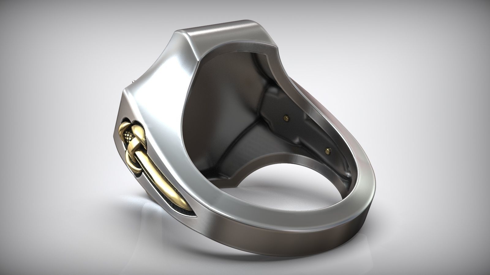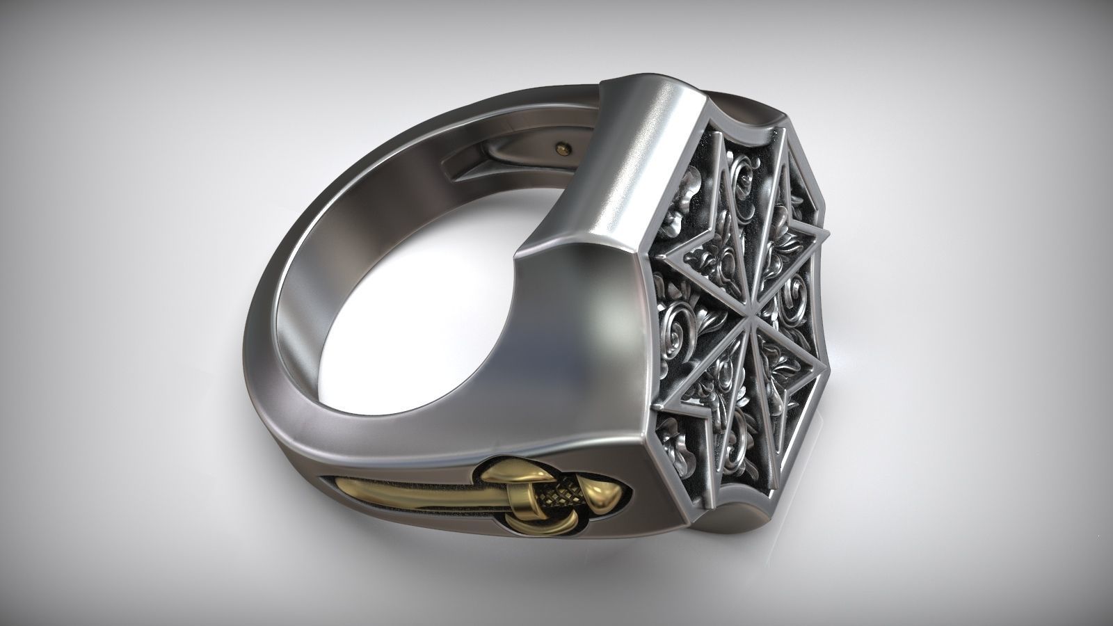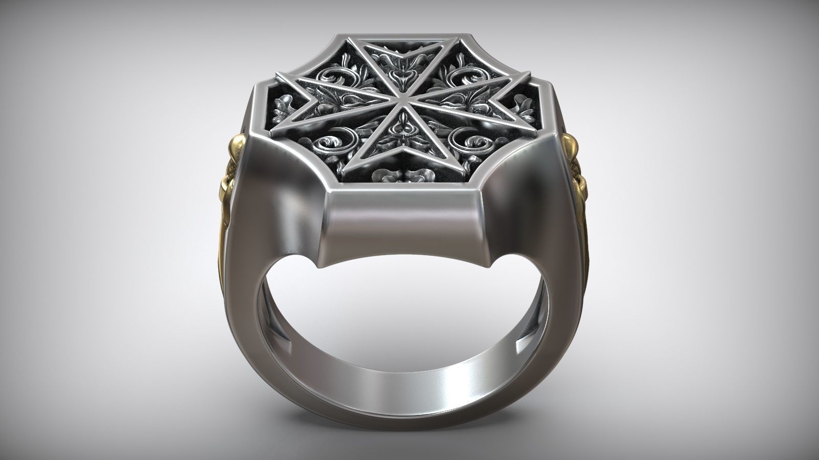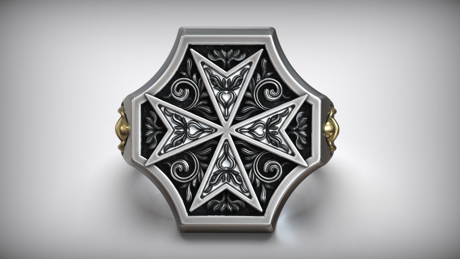 Unique Maltese Cross Sword Signet White Gold Dual Tone Ring