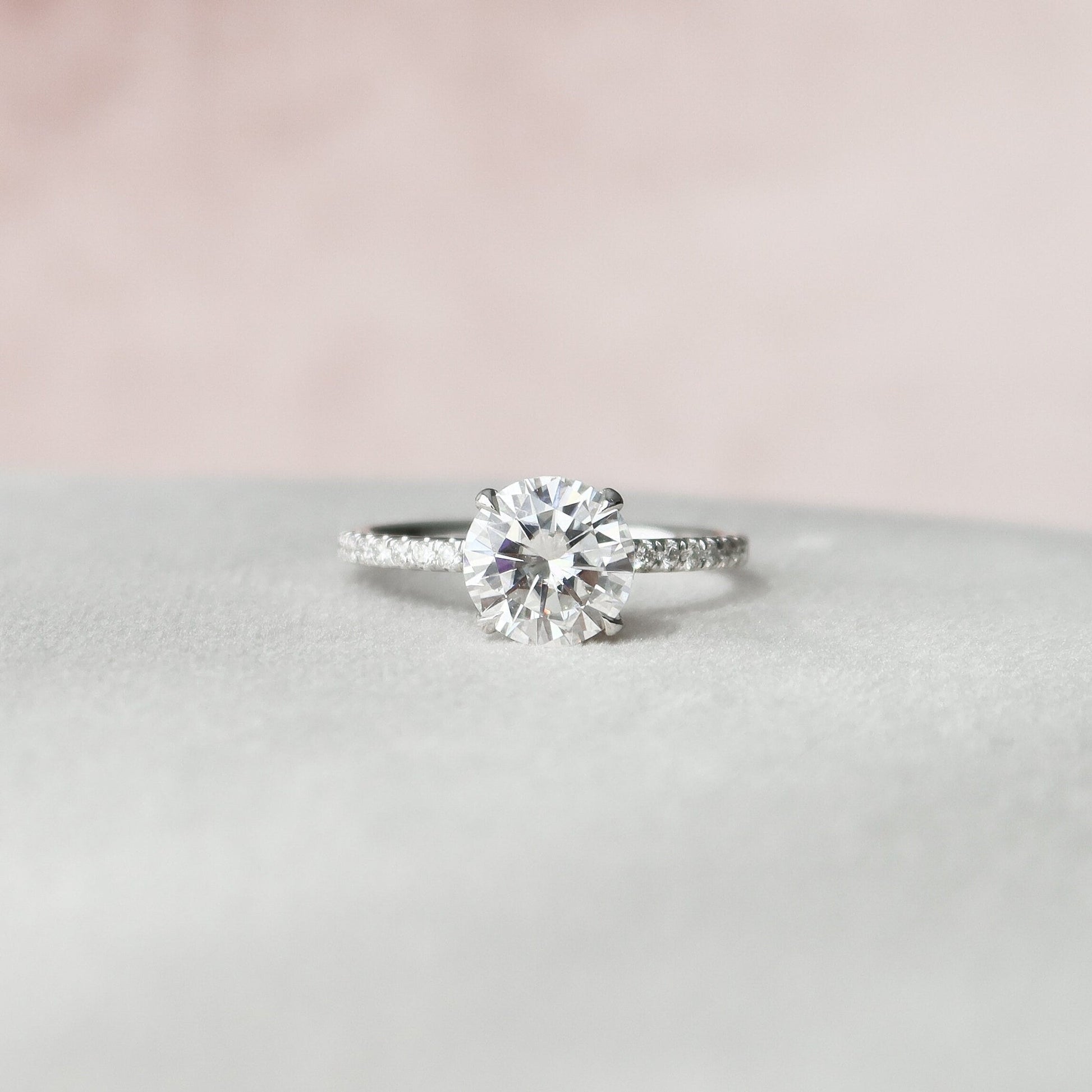 Unique Pave Hidden Halo Round Cut Moissanite Bridal Ring For Her